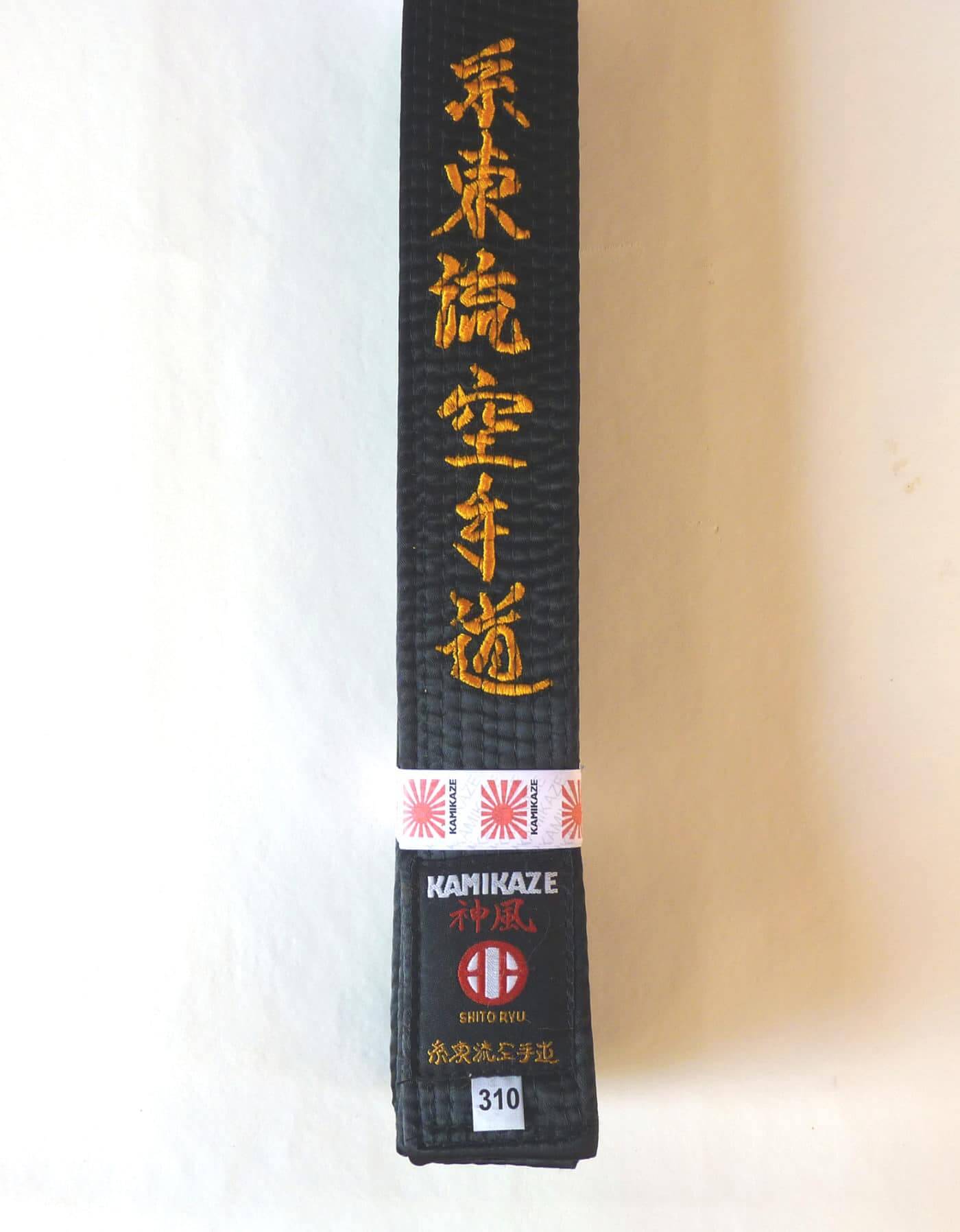 KAMIKAZE Special SHITO-RYU Black Karate Belt – High-quality cotton or satin