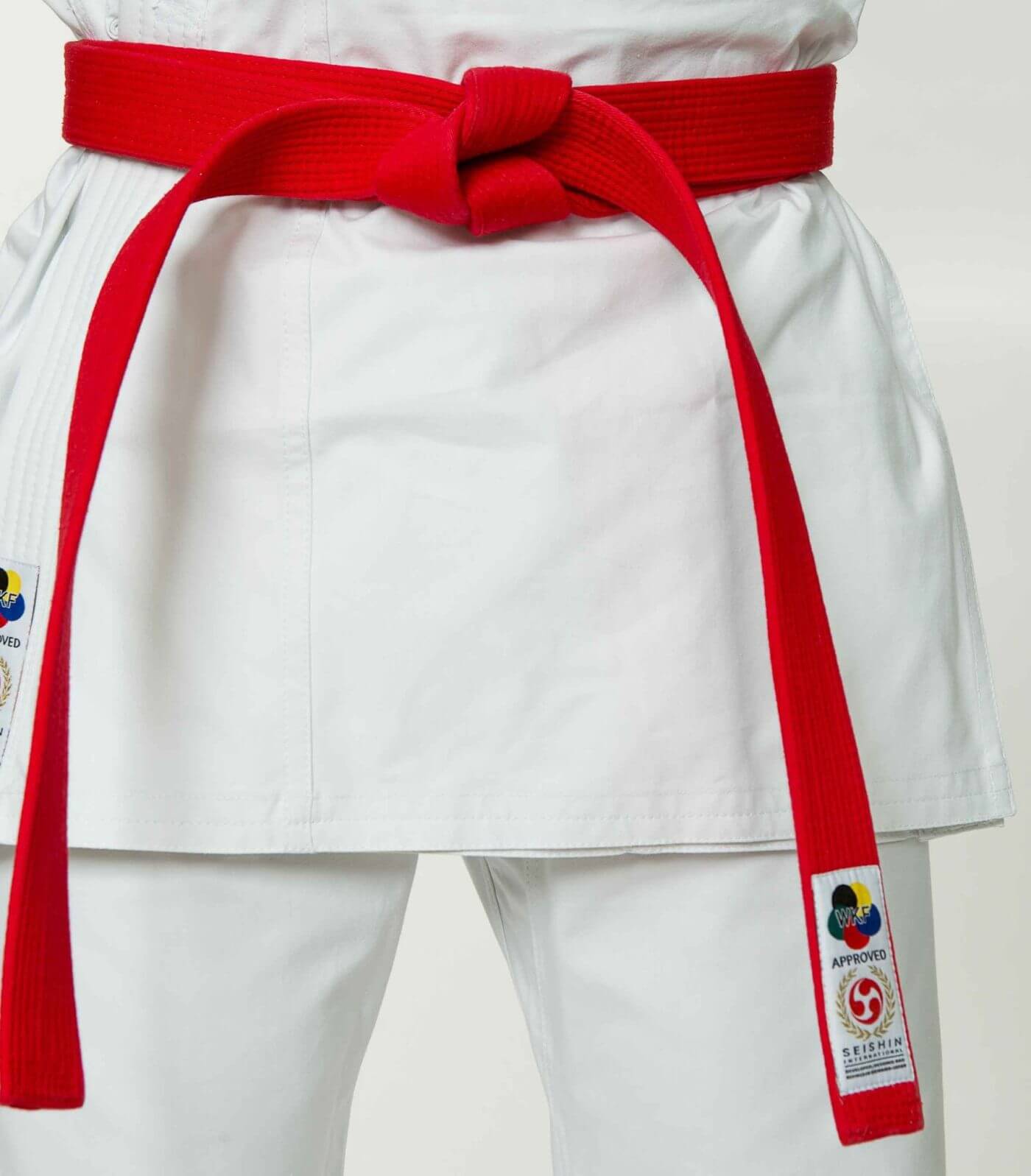 Seishin International karate competition belts – WKF – Red and blue 2-belt pack – Belts used by national team athletes and champions – Available in cotton (light) or satin (dark) – 4.5 cm (1.77 in.) wide.