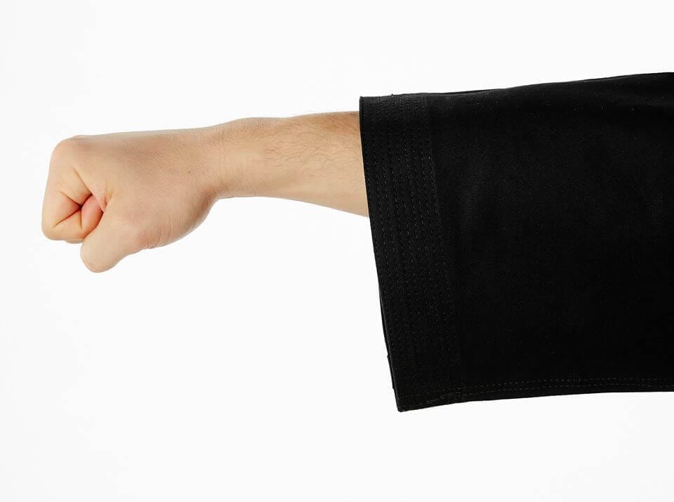 The Seishin International karate-gi has a nice presence and snap thanks to its rigid fabric, while remaining lighter than many other kata kimonos. With an average weight of 9.5 oz, it is also a versatile karate-gi for everyday training.