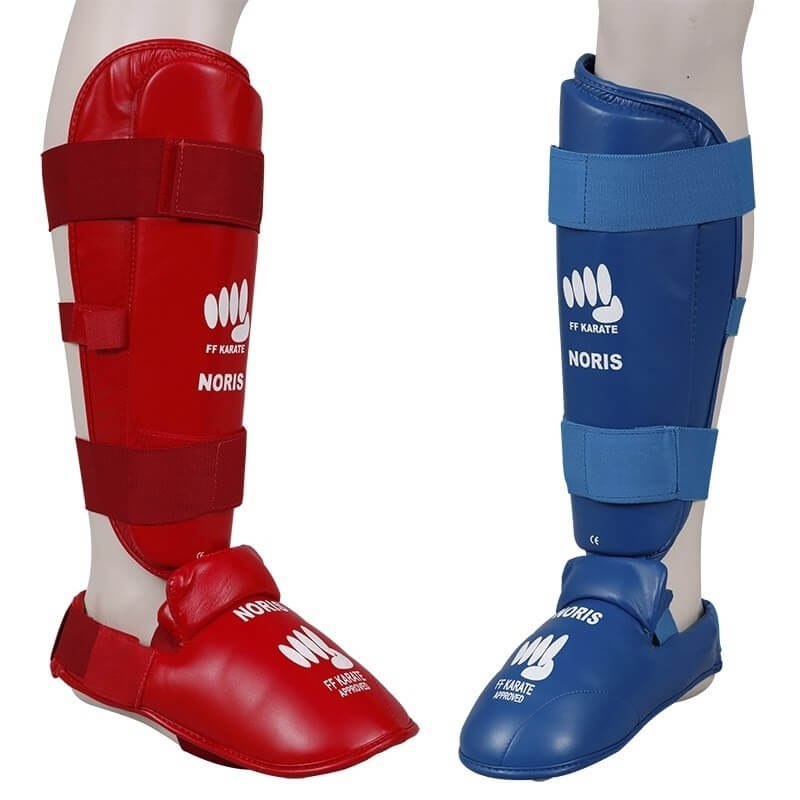 Noris karate shin-foot guards are made of polyurethane with high-density foam for safe training.