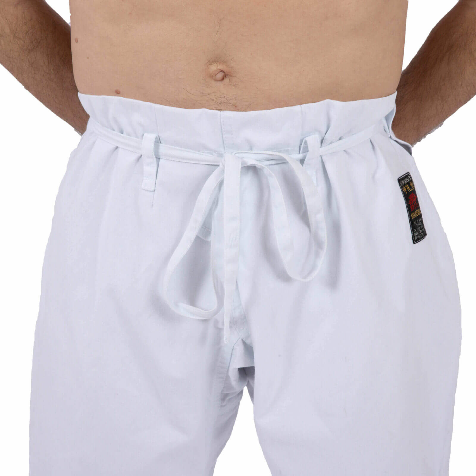 The pants are available in several sizes, from 130 cm to 200 cm, to suit all body shapes. A“WKF Approved” label option is also available, enabling participation in official World Karate Federation competitions. It’s important to note that all Shureido garments have a slightly bluish tint to preserve the karategi’s whiteness for longer; this tint gradually fades with washing.