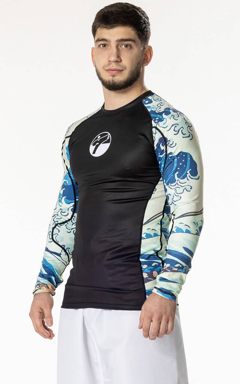 The design makes no compromises: the traditional Japanese pattern is sublimation-printed directly into the fabric, guaranteeing excellent color retention even after multiple washes. What’s more, thanks to its fast-drying, highly tear-resistant fabric, thisTokaido Tsunami Rashguard is ideal for training, competitions or intense combat or grappling sessions.