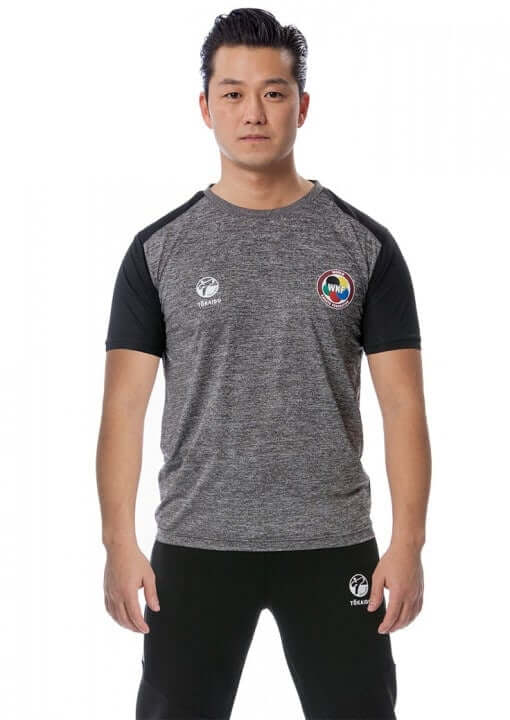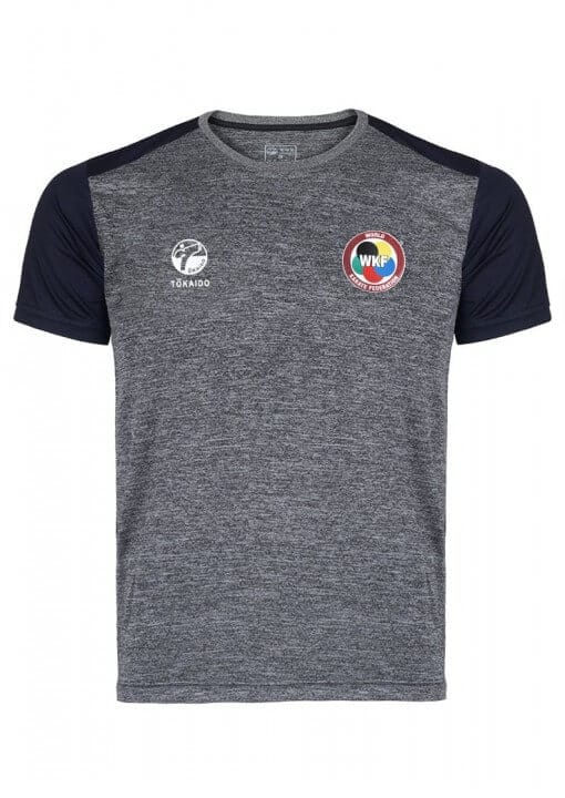 T-shirt Tokaido Team WKF for men – grey black : Ideal for sport and training – WKF logo on chest – 100% Polyester